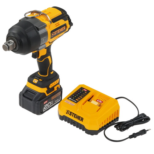 Ударный гайковерт Steher с BRUSHLESS двигателем и максимальным крутящим моментом 1000 Н∙м предназначен для фиксации резьбовых соединений размером до М22. Ударная функция с эффективным направлением удара обеспечивает легкое заворачивание без лишней нагрузки на кисть оператора. Имеет аккумуляторную систему LMS с 1 АКБ в комлекте, совместимую с одним известным брендом.