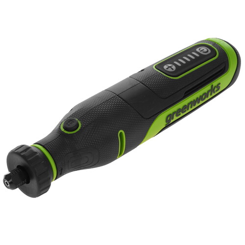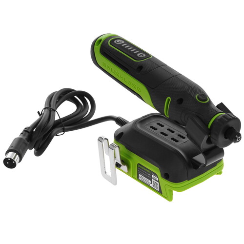 Гравер Greenworks G24RT 24V 3200807 бесщеточный аккумуляторный — гравер 24V с цанговым зажимом 2,4/3,2 мм для обработки мелких деталей. Оснащен бесщеточным двигателем. Имеет базу с местом хранения оснастки и поясной клипсой. В комплекте принадлежности 52 шт.