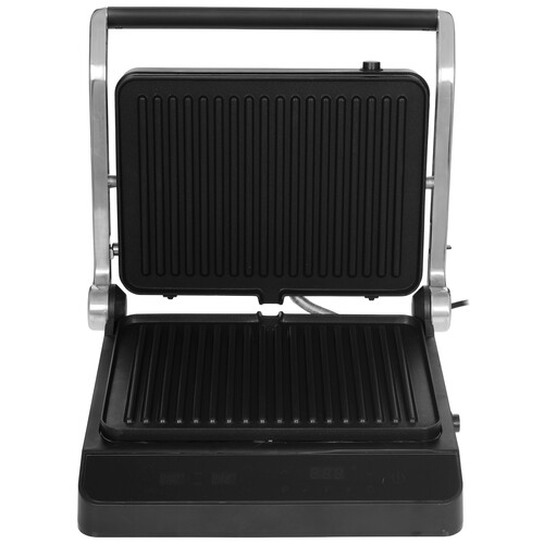 Электрогриль КТ-4615 предназначен для приготовления мяса, рыбы, овощей, тостов и многих других блюд. Электрогриль закрывается крышкой, так что продукты находятся между двух нагреваемых панелей и готовятся с двух сторон сразу. Прибор оснащён сенсорной панелью управления, с помощью которой вы сможете установить желаемую температуру приготовления, для каждой панели отдельно, время таймера, а также включить приготовление в одном из 5 предустановленных режимов. КТ-4615 оснащён поддоном для слива жира и сока, которые выделяются в процессе приготовления продуктов, поэтому вам не стоит переживать о сохранности чистоты вашей кухни во время готовки. Конструкция гриля позволяет готовить в двух режимах: двустороннем и одностороннем. В одностороннем режиме крышка гриля откидывается на 180°, благодаря чему гриль превращается в большую жаровню, а продукты можно выложить сразу на две панели. На панели нанесено антипригарное покрытие, что позволяет готовить с минимальным количеством масла. Такое покрытие также облегчает процесс чистки панелей. Панели у прибора полностью съёмные.