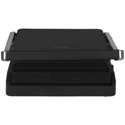 Электрогриль КТ-4617 — многофункциональное устройство для жарки мяса, рыбы, овощей, сосисок, бутербродов, панини и сэндвичей. С мощностью 1800–2000 Вт он обеспечивает равномерное и быстрое приготовление, сохраняя сочность продуктов. Гриль работает в двух режимах: двустороннем (с закрытой крышкой, сокращая время готовки) и одностороннем (крышка открывается на 180°, превращая гриль в жаровню). Можно настроить разную температуру для панелей, что удобно для приготовления различных блюд. Вы можете выбрать один из пяти предустановленных режимов приготовления: «Овощи», «Сосиски», «Рыба», «Куриные ножки» или «Стейк». Приготовление начнется автоматически, и кнопка режима на панели загорится зелёным. Устройство оснащено понятным сенсорным дисплеем. Вы можете легко установить нужную температуру (от 90 до 230 °С), настроить таймер и выбрать один из пяти предустановленных режимов. Это обеспечивает удобное и эффективное использование устройства. Электрогриль КТ-4617 имеет съёмный поддон для жира и сока, который легко моется. Он предотвращает загрязнение рабочей поверхности, обеспечивая удобство использования и чистоту на кухне. На панели нанесено антипригарное покрытие, позволяющее готовить без масла, снижая калорийность блюд и сохраняя полезные свойства. Также покрытие упрощает очистку, экономя ваше время. Все панели съёмные, что облегчает мойку и обеспечивает гигиеничность.