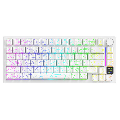 Многофункциональный интеллектуальный TFT-дисплей и дизайн ручки. Компоновка ANSI на 75% и улучшенное крепление на прокладке. Три режима подключения и совместимость с Mac/Win. Возможность горячей замены и конструкция с одним ключом и прорезями. Программируемые RGB-светодиоды и светодиоды, ориентированные на юг