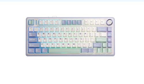 AULA F75 - механическая клавиатура с тремя вариантами подключения: проводное, радиоканал и Bluetooth, RGB подсветкой и роллером для управления эффектами и мультимедийными функциями.
