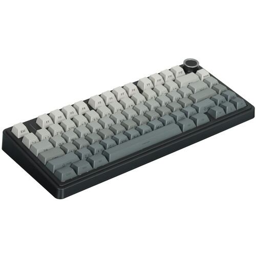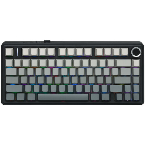 Звукоизолированные линейные свитчи. Подключение по проводу, Bluetooth, 2,4 ГГц (передатчик в комплекте). Встроенная батарея 4000 мАч. RGB подсветка. Извлекаемые свитчи. Размеры= 75%. Роллер для управления эффектами и мультимедия функциями. Двойные ножки. Питание/заряд по Type-C (кабель в комплекте)