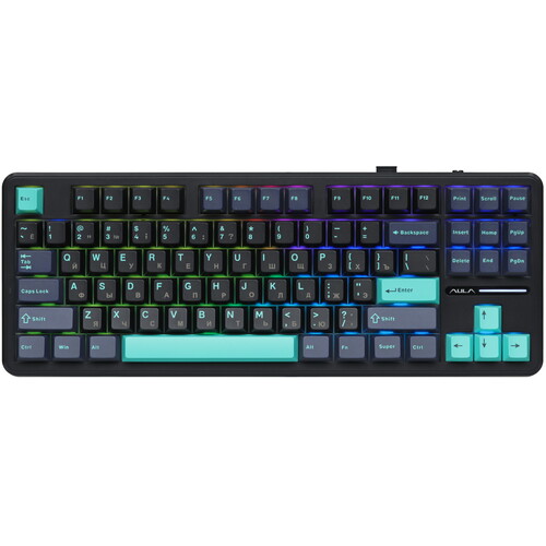 AULA F87 Black - механическая клавиатура с тремя вариантами подключения: проводное, радиоканал и Bluetooth. Отличается наличием RGB-подсветки и извлекаемыми свитчами.