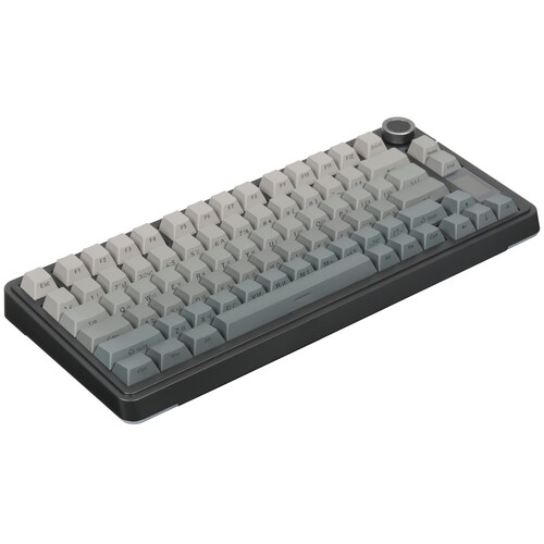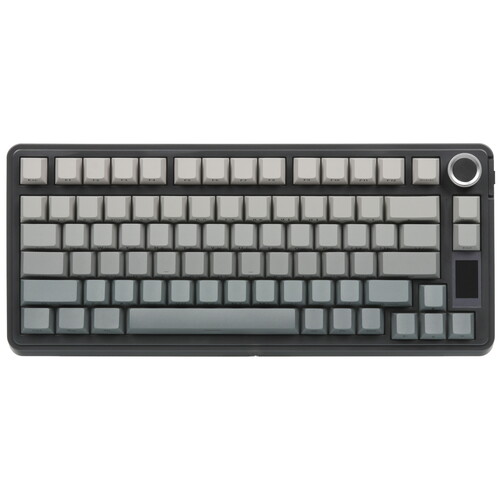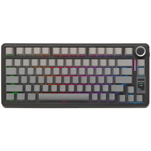 Три режима подключения: Проводное / Bluetooth / 2.4Гц. 75% раскладка. Звукоизолированные линейные свитчи. RGB подсветка в ритм звуку. Многофункциональный роллер из сплава. Дисплей