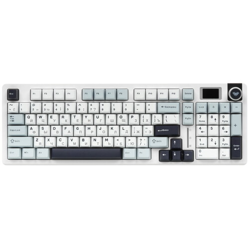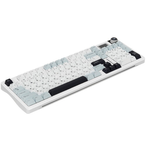 Звукоизолированные линейные свитчи (цвет голубой). Варианты подключения: Проводное, Bluetooth, 2.4 Ггц (передатчик входит в комплект). Двойные ножки. Дисплей и многофункциональный роллер. Извлекаемые свитчи