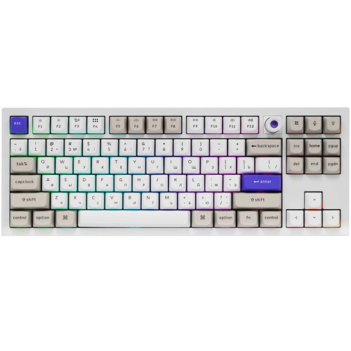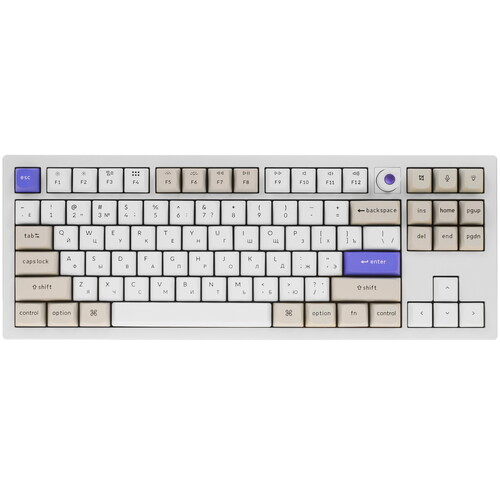 Клавиатура проводная + беспроводная Keychron Q3 HE [Q3HW-P1P-RU] получила 86 клавиш с линейными магнитными переключателями Gateron Nebula. Такие свитчи распознают степень нажатия и их можно настроить на разные точки срабатывания. Это позволяет менять параметры чувствительности кнопок под набор текста, игровые манипуляции или личные предпочтения. Клавиатуру можно подключить к ПК тремя способами. Соединение по USB обеспечит стабильный сигнал. Подключения через Bluetooth или радиоканал позволяет управлять компьютером, телевизором или приставкой на расстоянии до 5–10 м. Клавиатура проводная + беспроводная Keychron Q3 HE [Q3HW-P1P-RUU] оснащена кейкапам из PBT. Помимо цифрового блока и функциональных клавиш в клавиатуре есть колесо прокрутки. С его помощью можно регулировать громкость медиа, переходить между окнами, управлять персонажем в игре. Программируемые клавиши позволяют настроить быстрый вывод наиболее востребованных программ, приложений.