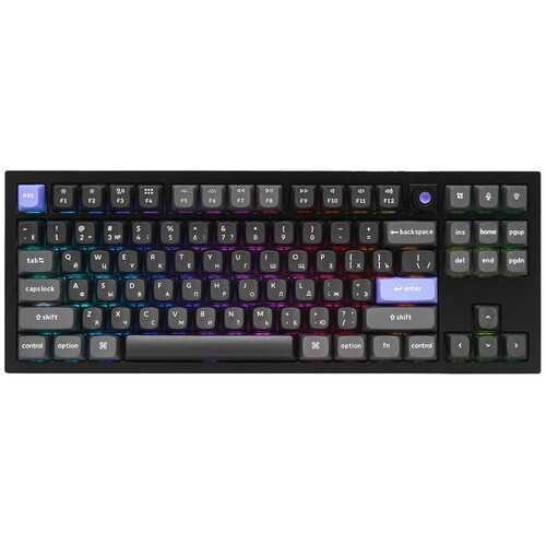 Клавиатура проводная + беспроводная Keychron Q3 HE [Q3HW-M1P-RU] получила 86 клавиш с линейными магнитными переключателями Gateron Nebula. Такие свитчи распознают степень нажатия и их можно настроить на разные точки срабатывания. Это позволяет менять параметры чувствительности кнопок под набор текста, игровые манипуляции или личные предпочтения. Клавиатуру можно подключить к ПК тремя способами. Соединение по USB обеспечит стабильный сигнал. Подключения через Bluetooth или радиоканал позволяет управлять компьютером, телевизором или приставкой на расстоянии до 5–10 м. Клавиатура проводная + беспроводная Keychron Q3 HE [Q3HW-M1P-RU] оснащена кейкапам из PBT. Помимо цифрового блока и функциональных клавиш в клавиатуре есть колесо прокрутки. С его помощью можно регулировать громкость медиа, переходить между окнами, управлять персонажем в игре. Программируемые клавиши позволяют настроить быстрый вывод наиболее востребованных программ, приложений.