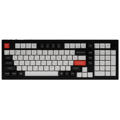 Клавиатура проводная + беспроводная Keychron Q5 HE [Q5H-M1P-RU] получила 101 клавишу с линейными магнитными переключателями Gateron Nebula. Такие свитчи распознают степень нажатия и их можно настроить на разные точки срабатывания. Это позволяет менять параметры чувствительности кнопок под набор текста, игровые манипуляции или личные предпочтения. Клавиатуру можно подключить к ПК тремя способами. Соединение по USB обеспечит стабильный сигнал. Подключения через Bluetooth или радиоканал позволяет управлять компьютером, телевизором или приставкой на расстоянии до 5–10 м. Клавиатура проводная + беспроводная Keychron Q5 HE [Q5H-M1P-RU] оснащена кейкапам из PBT. Помимо цифрового блока и функциональных клавиш в клавиатуре есть колесо прокрутки. С его помощью можно регулировать громкость медиа, переходить между окнами, управлять персонажем в игре. Программируемые клавиши позволяют настроить быстрый вывод наиболее востребованных программ, приложений.