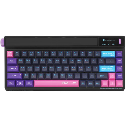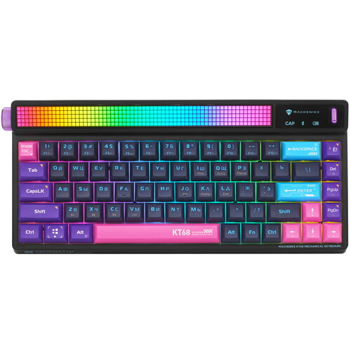 Клавиатура проводная/беспроводная Machenike KT68 Smart Screen выполнена в прочном корпусе компактных размеров и оборудована линейными механическими переключателями Gateron Yelow Pro 3.0, которые точно и быстро распознают нажатия для безошибочного контроля в играх. В данной модели реализована многоцветная светодиодная подсветка RGB, которая отличается стойкостью к повреждениям и неблагоприятным воздействиям.