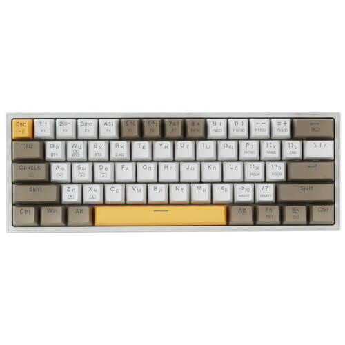 Fizz Pro - это компактная клавиатура с тихими переключателями и яркой RGB подсветкой. Три метода подключения — Bluetooth, USB и 2.4 ГГц — обеспечивают максимальную гибкость.