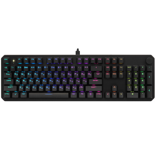 Клавиатура проводная ARDOR GAMING Blade V2 механического типа ориентирована на игры. В модели реализована RGB подсветка обеих раскладок. Дополнительные клавиши используются для управления звуком. В наличии цифровой блок и колесо прокрутки. Устройство собрано в шумоизолирующем корпусе.