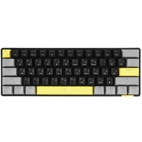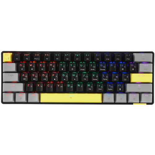 Механическая игровая клавиатура с LED-подсветкой RAINBOW LIGHT. Игровой форм-фактор корпуса TKL (60%) придется по душе любителям гейминга. При этом, несмотря на сокращенное количество клавиш, функционал полноразмерной клавиатуры сохранен благодаря сочетаниям мультифункциональных клавиш с клавишей Fn.