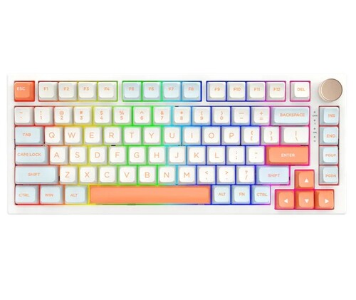 Клавиатура проводная VGN N75 Jelly Orange оборудована 82 клавишами, в том числе Fn-клавишей, а так же колесиком. Выполненный из пластика корпус блокирует громкие звуки. Подключение к устройствам с USB-разъемом производится через кабель.