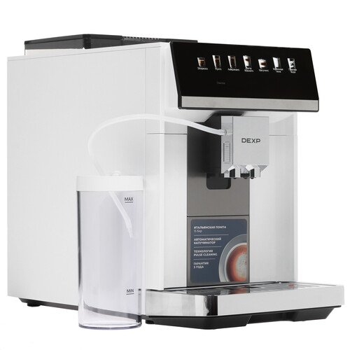 Кофемашина автоматическая DEXP DAM-157AG со встроенной кофемолкой подходит для приготовления бодрящего напитка из молотых и зерновых сортов кофе. Есть возможность выбора одной из семи степеней помола. Капучинатор автоматически взбивает молочную пенку при приготовлении латте и подобных напитков. Есть возможность регулировки температуры, крепости и объема порции. Система автоматической декальцинации защищает кофемашину от накипи.