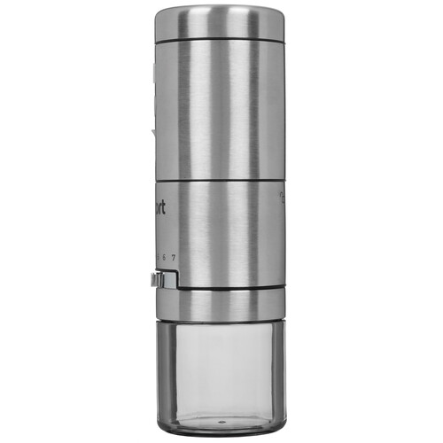 Жерновая кофемолка Kitfort КТ-7537 предназначена для помола кофейных зёрен. Кофемолка дает равномерный помол, что положительно влияет на вкус эспрессо. Это отличный аксессуар для всех любителей кофе! Конические жернова – пара стальных конусов, которые бережно перемалывают зёрна, сохраняя их аромат. Их форма обеспечивает плавное дробление без перегрева, а нержавеющая сталь гарантирует долговечность и чистый вкус. Регулируемое расстояние между жерновами позволяет настроить степень помола. Хотите насыщенный эспрессо? Выбирайте мелкий помол. Предпочитаете нежный френч-пресс? Увеличьте степень помола. Регулируйте вкус одним движением! Разборная конструкция кофемолки обеспечивает её удобное хранение. Не забывайте мыть контейнер для зёрен перед каждой сменой сорта кофе, а для долгой службы устройства периодически очищайте механизм измельчения. Во время помола и зарядки горит подсветка на моторном блоке. Когда уровень заряда будет слишком низким, подсветка начнёт мигать красным. Прибор заряжается от USB Type-C. Шнур подсоединяется к разъёму, расположенному на корпусе устройства.