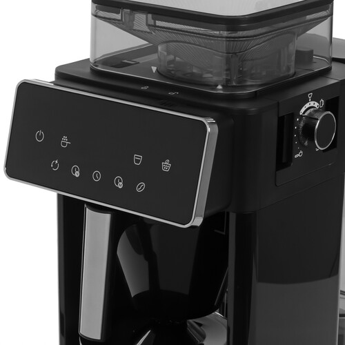Капельная кофемашина готовит ароматный и бодрящий напиток из молотого кофе или из кофейных зёрен. Встроенная кофемолка измельчает зёрна автоматически и подаёт сразу в фильтр. Подходит для использования в домашних условиях и в офисе. Воронка, фильтр и кофейник можно снять и очистить от кофе. Резервуар в свою очередь тоже снимается для лёгкого наполнения водой. В комплекте также есть щёточка для чистки устройства. Управление осуществляется при помощи кнопок на панели. А функция отложенного старта позволит выбрать подходящий момент для заваривания кофе. Установите нужный таймер, и в момент, когда вы проснётесь, уже будет готов ароматный свежезаваренный кофе! Встроенная кофемолка автоматически измельчит зёрна и подаст их сразу в фильтр. Степень помола регулируется от мелкого к крупному. Также можно использовать кофемолку без связки с данной кофемашиной, а для варки кофе, например, в турке. Крышка кофейника приподнимает клапан. Вместе с клапаном поднимается уплотнительное кольцо внутри воронки и открывает отверстие для выхода кофе. Когда кофейник не на платформе, кофе даже не капает на неё. Кофемашина оснащена подогревом платформы с кофейником. Около 40 минут ваш кофе точно будет оставаться горячим. А благодаря резервуару для воды на 1,35 л можно сварить полный кофейник свежего и ароматного напитка!