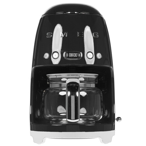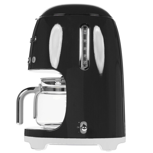 Кофеварка капельная SMEG DCF02BLEU позволит наслаждаться любимым напитком. Она выполнена в ретро-стиле и оснащена контейнером для воды, который вмещает 1.4 л. В качестве нагревательного элемента используется термоблок. Для простого управления и визуального контроля настроек установлен дисплей с таймером и часами. Одной из особенностей модели отмечается функция регулировки жесткости воды. Также реализованы возможность выбора крепости кофе, режим поддержания тепла на протяжении 40 минут и автоматическая декальцинация. В наборе с кофеваркой SMEG DCF02BLEU поставляются стеклянный кофейник, фильтр и мерная ложка.
