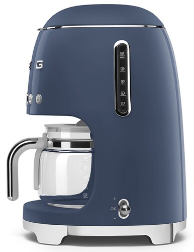 Капельная кофеварка SMEG DCF02NBEU, выполненная в стиле 50-х годов, подчеркнёт индивидуальность интерьера и станет настоящим украшением Вашей кухни в квартире или загородном доме. Предназначена для приготовления кофейных напитков разной крепости. Стеклянный кувшин рассчитан на 10 чашек, оборудован ручкой и крышкой. Корпус изготовлен из окрашенного металла.