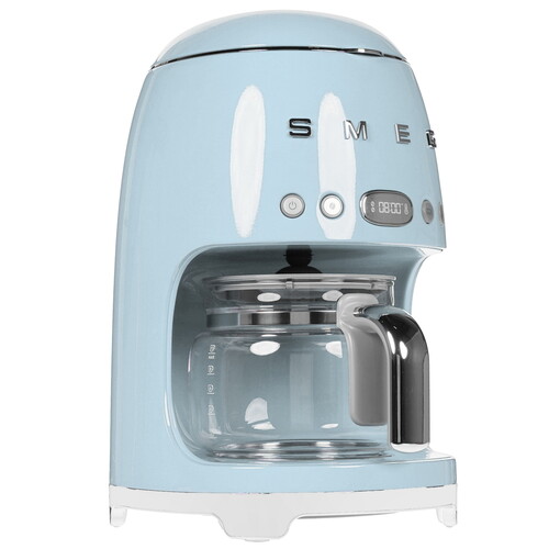 Кофеварка капельная SMEG DCF02PBEU предназначена для приготовления вкусного кофе с насыщенным выраженным ароматом. Она сочетает привлекательный внешний вид, удобное кнопочное управление с дисплеем и высокую технологичность. Кофейник изготовлен из прозрачного ударопрочного стекла, а также отличается емкостью 1.25 л и эргономичной ручкой. В данной модели предусмотрена возможность регулировки крепости напитка и выбора необходимой порции. Из других особенностей кофеварки SMEG DCF02PBEU отмечаются таймер, плита автоматического подогрева, противокапельная система. Система автоматической декальцинации помогает продлить срок службы техники.