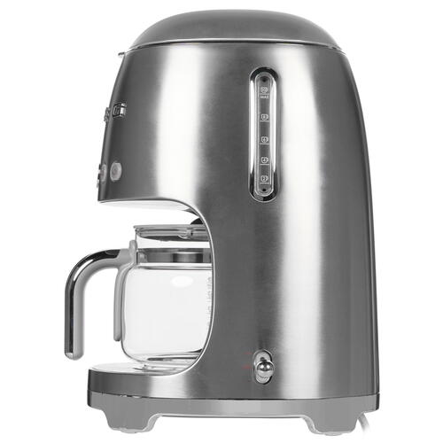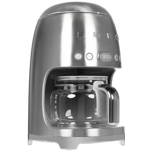 Кофеварка капельная SMEG DCF02SSEU выполнена в привлекательном стиле ретро и отличается широкими функциональными возможностями, которые позволяют готовить вкусный ароматный напиток и делают этот процесс максимально комфортным. Контейнер для воды характеризуется объемом 1.4 л. В качестве нагревательного элемента используется термоблок. Данная модель предусматривает регулировку жесткости воды и выбор крепости напитки простым нажатием кнопок. Для контроля выбранных параметров установлен информативный дисплей. Среди особенностей модели SMEG DCF02SSEU отмечаются функция поддержания тепла, таймер, автоматическое отключение, противокапельная система и автоматическая декальцинация. В комплекте предусмотрены прозрачный стеклянный кофейник, фильтр и мерная ложка для молотого кофе.