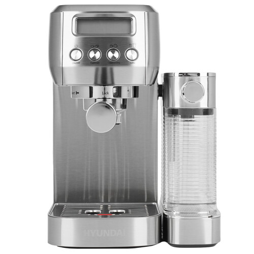 В кофеварка рожковая Hyundai HEM-9999 установлена итальянская помпа 20 бар с функцией предварительного заваривания для качественного экстрактирования кофе. Мощность 1350 Вт. Объем бака для воды 1.3 литра. Автоматический капучинатор, объем бака для молока 700 мл. Два независимых термоблока для стабильной температуры. Профессиональный металлический темпер для правильной прессовки, фильтры на 7 и 14грамм кофе в комплекте.