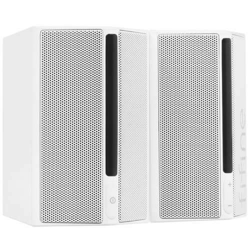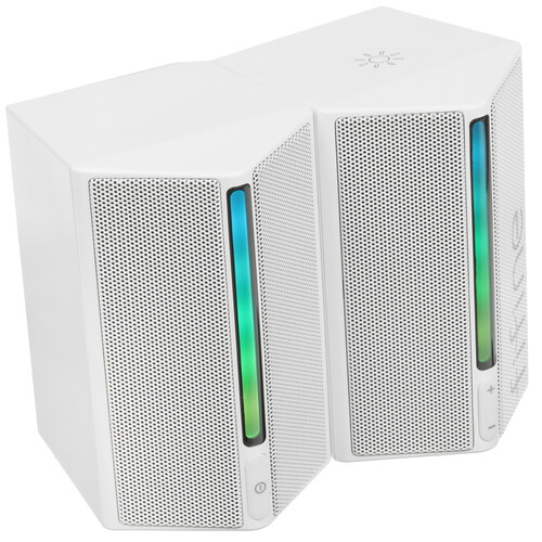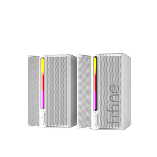 Колонки Fifine A20 белого цвета питаются через USB порт и не нуждаются в сети 220 В. Они имеют два динамика и выдают стереозвучание мощностью 4 Вт. Устройство оснащено яркой RGB-подсветкой.