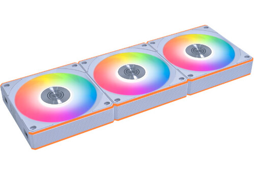 Комплект реверсных вентиляторов LIAN LI UNI FAN CL WIRELESS белого цвета с подсветкой ARGB. Размер каждого вентилятора составляет 120x120 мм. Количество вентиляторов в комплекте - 3шт.