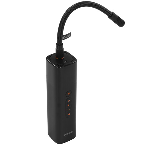 Компрессор UGREEN ET501 оснащен насадками-переходниками для накачивания шин авто и велосипеда, надувных матрасов и других изделий. Устройство работает от прикуривателя 12 В. Цифровой манометр отображает давление в единицах BAR, KPA и PSI. Фонарик и аварийная LED-индикация делают компрессор многофункциональным устройством.