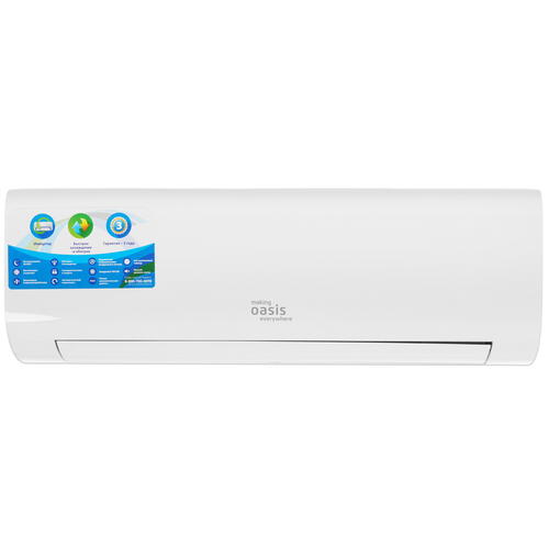 Не торопитесь обзаводиться бесчисленным количеством климатической техники, ведь ее прекрасно заменит кондиционер настенный (сплит-система) Oasis making oasis everywhere OX-9I. Благодаря впечатляющему функционалу ему не составит труда мгновенно охладить воздушный поток или повысить температурные значения до комфортной пользователю отметки. Выполненного на базе инверторного двигателя ассистента отличают минимальные показатели шума и невысокий уровень энергопотребления. Наслаждайтесь свежим и чистым воздухом каждый день, ведь фильтрующие элементы, спрятанные внутри кондиционера настенного (сплит-системы) Oasis making oasis everywhere OX-9I, стоят на страже тотальной нейтрализации мельчайших пылевых частиц. Даже после непрерывной многолетней эксплуатации вы не столкнетесь с поломкой внешнего блока, ведь производитель позаботился о его защите по стандарту IP24, что придает устойчивость к воздействию влаги. Скрытый цифровой дисплей будет непрерывно уведомлять о выбранных опциях.