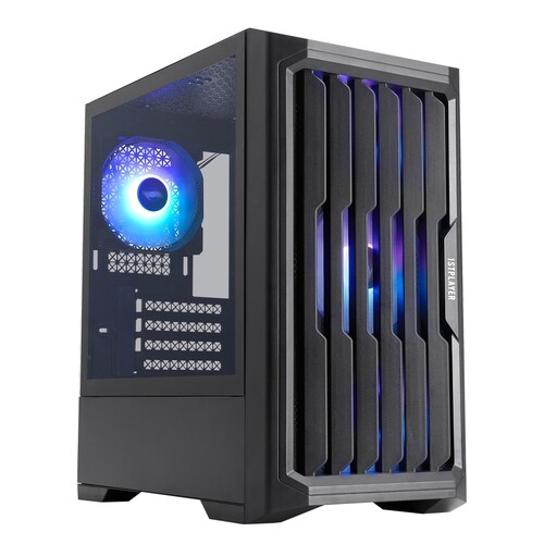 Корпус 1STPLAYER BULLET HUNTER H2 [H2-BK-4F1] черного цвета в форм-факторе Midi-Tower подходит для сборки ПК на платформах Micro-ATX и Mini-ITX. Модель идет с 4 вентиляторами: 3 спереди и 1 сзади для быстрого отвода тепла. Сетчатая передняя панель обеспечивает эффективный продув. На передней панели устройства есть USB 3.1, USB 2.0, аудио разъемы и кнопки управления. Для эстетики предусмотрена FRGB подсветка вентиляторов и боковая стеклянная панель.