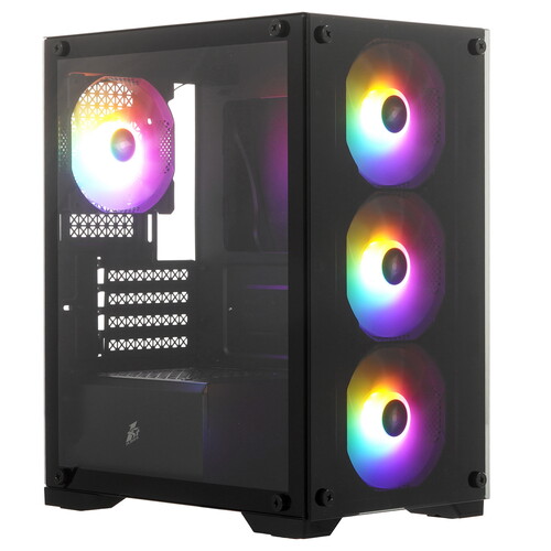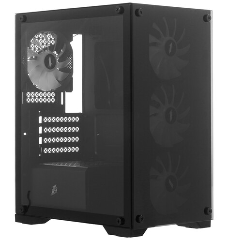 Корпус 1STPLAYER FIREBASE X2-M белого цвета в форм-факторе Mini-Tower подходит для сборки ПК на платформе Micro-ATX. Модель идет с 4 вентиляторами: 3 спереди и 1 сзади для быстрого отвода тепла. Сетчатая передняя панель обеспечивает эффективный продув. На передней панели устройства есть USB 3.1, USB 2.0, аудио разъемы и кнопки управления. Для эстетики предусмотрена ARGB подсветка вентиляторов и боковая стеклянная панель.