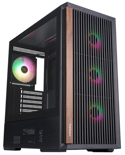 Миниатюрный корпус 1STPLAYER WD7 станет основой мощной системы. Его конфигурация предусматривает вертикальное размещение материнской платы и установку видеокарты длиной до 390 мм. Изначально в комплекте имеются 6 вентилятора диаметром 120 мм,. Место для блока питания форм-фактора ATX располагается снизу.