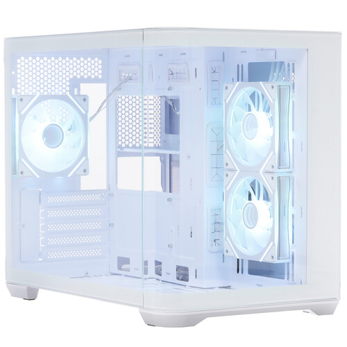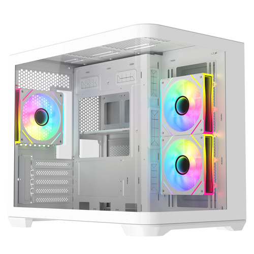 Корпус ARDOR GAMING Crystal CGM имеет стальной каркас белого цвета. Прозрачные панели из закаленного стекла спереди и сбоку обеспечивают панорамный обзор всех компонентов аппаратной платформы компьютера, устойчивы к появлению сколов и трещин. Модель оснащена тремя вентиляторами с размерами 120x120 мм и программируемой подсветкой ARGB. Корпус ARDOR GAMING Crystal CGM представлен в типоразмере Mini-Tower. Внутреннее пространство предусматривает размещение материнской платы форм-фактора Micro-ATX или Mini-ITX, видеокарты длиной до 420 мм. Три отсека 2.5 дюйма и 2 отсека 3.5 дюйма предоставляют возможность создания вместительного хранилища файлов посредством накопителей HDD и SSD. На верхней панели допускается монтаж жидкостного кулера длиной не более 360 мм. Укладка кабелей за задней стенкой улучшает вентиляцию воздуха и упрощает организацию пространства. На передней панели корпуса размещены разъемы USB стандарта Type-A и Type-C, аудиоразъем 3.5 мм для подключения гарнитуры, накопителей, микрофона и других периферийных устройств. Фильтр защищает комплектующие от проникновения пыли.
