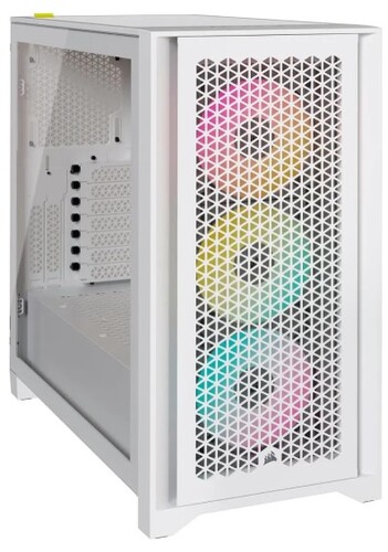 Корпус Corsair iCUE 4000D RGB AIRFLOW относится к среднеформатным устройствам. Он изготовлен в белом цвете и предназначен для сборки игрового ПК. В конструкции модели сочетаются пластик, закаленное стекло и сталь. Фронтальная панель, выполненная из металла, имеет сетчатую структуру. Материнскую плату в корпус Corsair iCUE 4000D RGB AIRFLOW необходимо ставить вертикально, а блок питания длиной до 220 мм – снизу. В комплекте изначально предусмотрено 3 RGB вентилятора, при необходимости их количество можно увеличить.