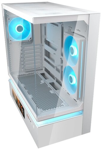 Cougar CFV235 Vision — это корпус для ПК с инновационной конструкцией центральной плавающей вентиляции (CFV). Она разделяет отсек блока питания и основной отсек, позволяя использовать свободное пространство между ними для охлаждения и дополнительной вентиляции. Встроенный 9,16-дюймовый IPS TFT ЖК-дисплей обеспечивает программный мониторинг системы в режиме реального времени с разрешением 1920×462 и частотой обновления 60 Гц, отображая критически важные данные и настраиваемые визуальные эффекты. Оптимальное сочетание полного панорамного обзора, компактных размеров, архитектурно усовершенствованной системы охлаждения и технологии отображения с эффектом присутствия — CFV235 Vision позволяет визуализировать воздушный поток за пределами обычных размеров.