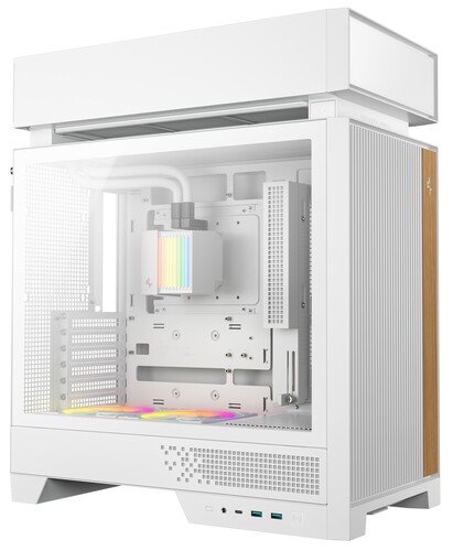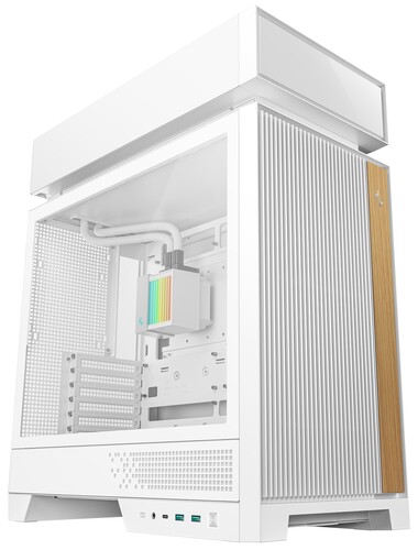 Корпус DEEPCOOL CL6600 в форм-факторе Mid-Tower поддерживает вертикальное размещение материнской платы форм-фактора Micro-ATX, Mini-ITX или Standard-ATX включая платы с Back Connect. В устройстве можно собрать компьютерную систему с использованием блока питания ATX/SFX длиной до 160 мм, видеокарты длиной до 413 мм и процессорного кулера высотой до 175 мм. Внутренний объем корпуса DEEPCOOL CL6600 вместе с предустановленной системой жидкостного охлаждения и двумя реверсными вентиляторами 120 мм обеспечивает свободную циркуляцию воздуха для понижения температуры «горячих» компонентов.