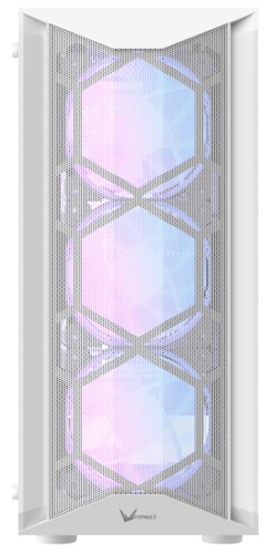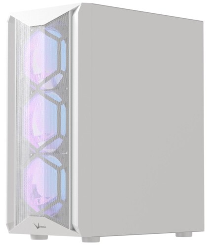 Formula V Line Air Power G1 Plus — корпус ATX с эффектной угловатой передней панелью и полностью сетчатым дизайном для максимального воздушного потока, оснащённый предустановленными яркими вентиляторами ARGB. Доступен в белом и чёрном цветах, сочетает в себе стиль с высокой эффективностью охлаждения.