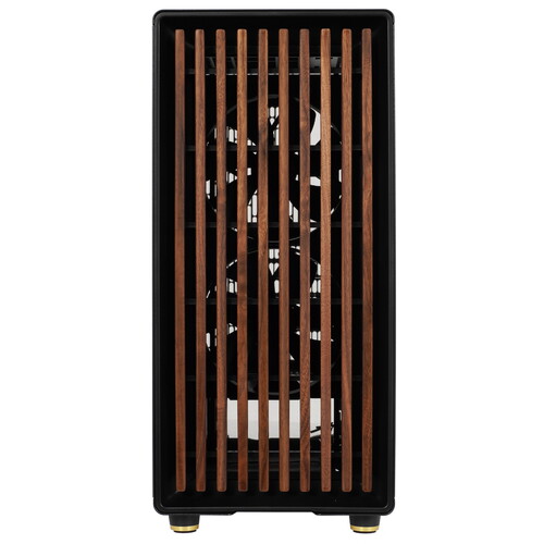 Компания Fractal Design представила необычный компьютерный корпус North. Его главной особенностью является фронтальная панель — её элементы выполнены из натурального ореха или дуба. Дизайн дополнен изящными деталями из латуни, стали и кожи. Корпус имеет семь слотов расширения, поддерживает установку видеокарт длиной до 355 мм, процессорных кулеров высотой до 145 мм и блоков питания длиной до 255 мм. Внутри хватит места для установки восьми 120-мм или шести 140-мм вентиляторов. Поставляется корпус с двумя предустановленными 140-мм вентиляторами Aspect 14 с ШИМ-управлением. В комплект поставки входит кронштейн для двух дополнительных вентиляторов.