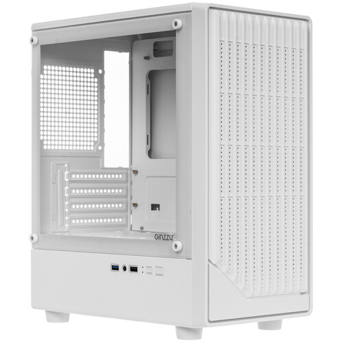 Корпус Ginzzu CL413 белого цвета в форм-факторе Mini-Tower подходит для сборки ПК на платформах Micro-ATX, Mini-ITX. На корпусе устройства есть USB 3.1, USB 2.0, аудио разъемы и кнопки управления. Для эстетики предусмотрена FRGB подсветка вентиляторов и боковая стеклянная панель. Возможна прокладка кабелей за задней стенкой. В комплекте не предусмотрены вентиляторы.