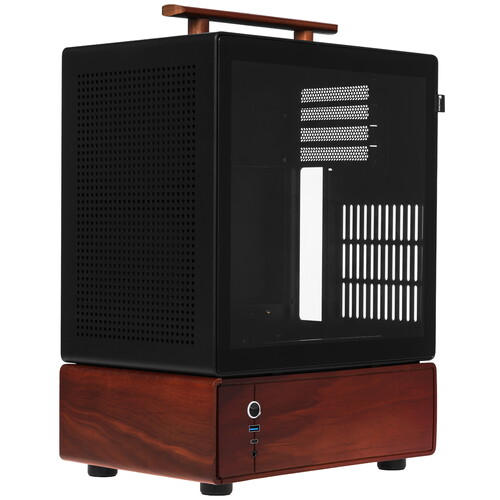 JONSBO T7 - корпус для ITX/M-ATX плат. Особенностью модели является съемная деревянная ручка для переноски. Материалы изготовления — дерево, 1-миллиметровая сталь и алюминиевый сплав толщиной 3 мм. Панель ввода-вывода содержит USB 3.0, USB Type-C и комбинированный аудиоразъем. Максимальная длина видеокарты не должна превышать 280 мм, высота процессорного кулера — 165 мм. При этом кейс вмещает стандартные блоки питания ATX длиной 220 мм.
