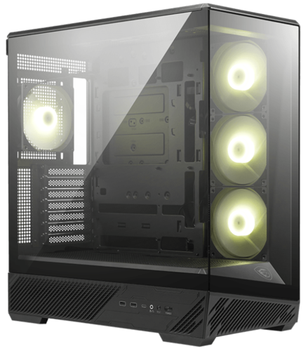 Серия MAG от MSI — это стабильность и долговечность, созданная для самых жёстких игровых баталий и способная выдержать экстремальные игровые нагрузки. Вся линейка характеризуется прочным корпусом с металлической жёсткостью и отличным рассеиванием тепла, обеспечивая стабильность критически важных игровых компонентов. Серия MAG PANO 130R отвечает желанию пользователей выставить свою ARGB-сборку на обозрение: корпус оснащён 270-градусной панорамной прозрачной панелью, которая усиливает визуальную привлекательность и сохраняет лаконичный дизайн. Создан с единым эстетическим замыслом: смелые диагональные линии и резкие скошенные углы идеально сочетаются с материнскими платами, жидкостными системами охлаждения и блоками питания серии MAG. Всё это придаёт вашей сборке гармоничный, завершённый и стильный вид.