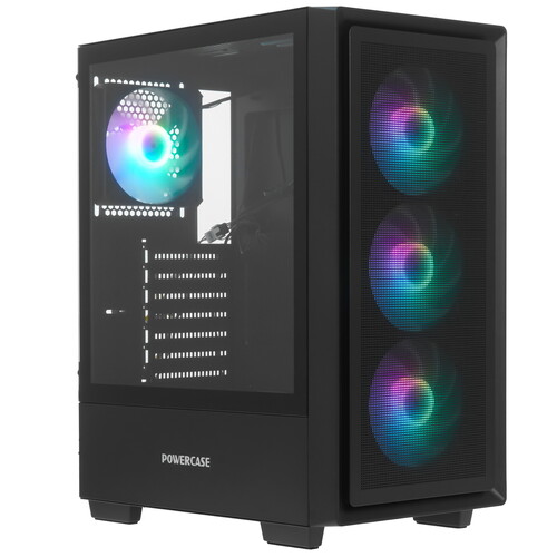 Корпус Powercase Mistral AY4B ARGB черного цвета в форм-факторе Mid-Tower подходит для сборки ПК на платформах Micro-ATX, Mini-ITX, Standard-ATX. Модель идет с 4 вентиляторами для быстрого отвода тепла. На корпусе устройства есть USB 3.1, USB 2.0, аудио разъемы и кнопки управления. Возможна прокладка кабелей за задней стенкой. С помощью многоцветной ARGB-подсветки можно создавать разные визуальные эффекты.