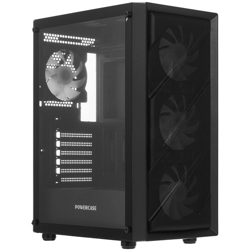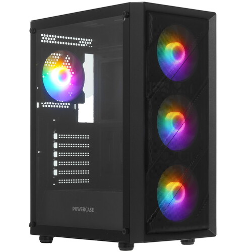 Корпус PowerCase Mistral EA21 – модель с прозрачной боковой панелью из закаленного стекла, через которую будет хорошо видно комплектующие с включенной подсветкой. Устройство представлено в форм-факторе Mid-Tower и обладает размерами 470x212x365 мм, оно поддерживает вертикальную установку материнской платы любого типоразмера: Micro-ATX, Mini-ITX или Standard-ATX. При необходимости в корпусе PowerCase Mistral EA21 можно использовать жидкостную систему охлаждения, также оно укомплектовано четырьмя FRGB вентиляторами размером 120 мм.