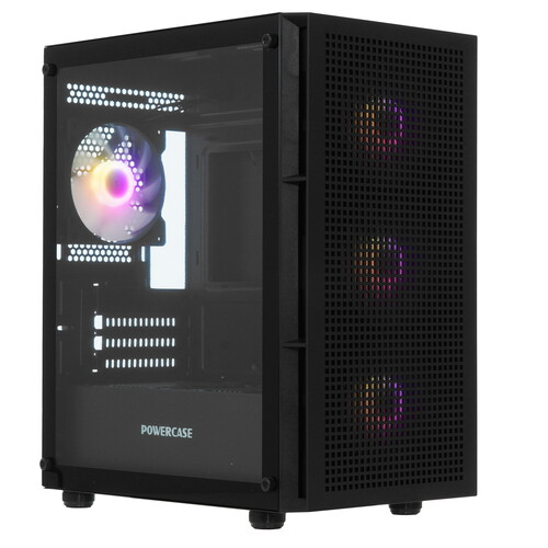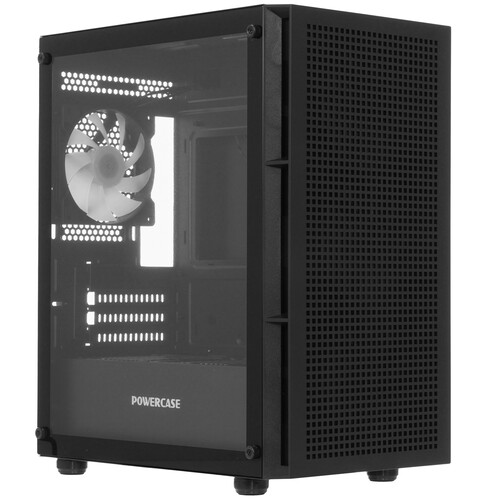 Корпус PowerCase Mistral Micro EM17 черного цвета – модель форм-фактора Mini-Tower, которая подойдет для сборки офисного или игрового компьютера. Материнская плата форм-фактора Micro-ATX или Mini-ITX размещается в устройстве вертикально, а блок питания типоразмера ATX – в нижней части корпуса. Модель PowerCase Mistral Micro EM17 оснащена боковой стенкой с прозрачным окном из закаленного стекла, через которое можно увидеть всю сборку. Помимо вентиляторов в корпус можно установить систему жидкостного охлаждения для поддержания оптимальной температуры «горячих» компонентов компьютера.