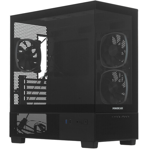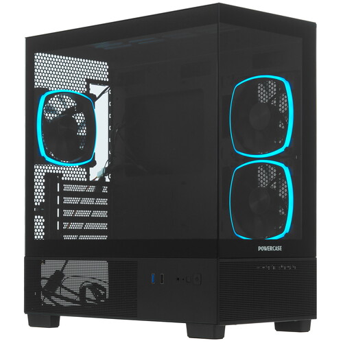 Корпус Powercase Vision Micro M3B черного цвета в форм-факторе Mini-Tower подходит для сборки ПК на платформах Micro-ATX, Mini-ITX. Модель идет с 3 вентиляторами для быстрого отвода тепла. На корпусе-аквариуме устройства есть USB 3.1, USB 2.0, аудио разъемы и кнопки управления. Возможна прокладка кабелей за задней стенкой. С помощью многоцветной ARGB-подсветки можно создавать разные визуальные эффекты.