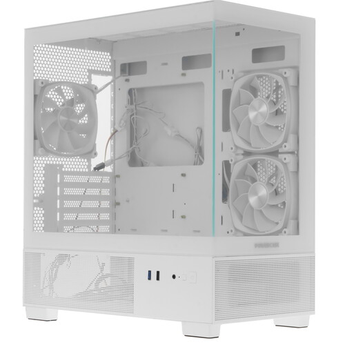 Корпус Powercase Vision Micro M3W белого цвета в форм-факторе Mini-Tower подходит для сборки ПК на платформах Micro-ATX, Mini-ITX. Модель идет с 3 вентиляторами для быстрого отвода тепла. На корпусе-аквариуме устройства есть USB 3.1, USB 2.0, аудио разъемы и кнопки управления. Возможна прокладка кабелей за задней стенкой. С помощью многоцветной ARGB-подсветки можно создавать разные визуальные эффекты.