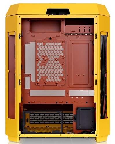 Вертикальный корпус Thermaltake The Tower 600 в виде восьмиугольной призмы для полноразмерных материнских плат с форм-фактором ATX с разъёмами на обратной стороне (ASUS BTF, MSI PROJECT ZERO, GIGABYTE PROJECT STEALTH). Он имеет достаточно пространства внутри для установки радиатора готовой системы жидкостного охлаждения (AIO) размером 420-мм с правой стороны и 360-мм с левой, а также позволяет разместить до тринадцати 120-мм или девяти 140-мм вентиляторов. Благодаря отдельно приобретаемой подставке Chassis Stand Kit корпус можно разместить в горизонтальном положении.