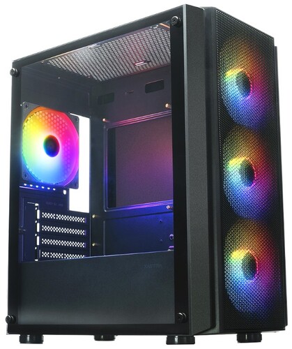 Корпус XASTRA A402M 4FRGB собирается из стальных деталей, пластика и стекла, является основой для сборки домашнего или офисного системного блока с базовым функционалом. В модели с вертикальной ориентацией материнской платы достаточно пространства для подключения дискретного видеопроцессора длиной до 310 мм и системы охлаждения для центрального процессора до 159 мм высотой. Блок питания, который лучше выбирать с учетом энергопотребления всей сборки, в комплектацию корпуса не включен.