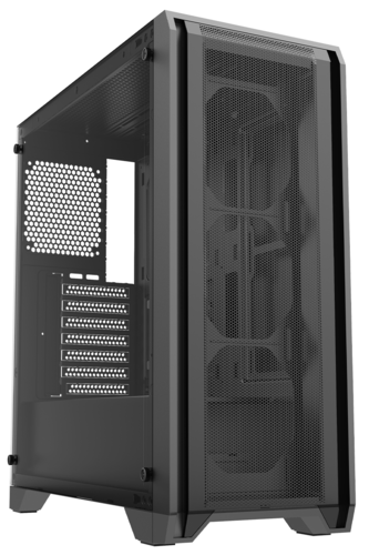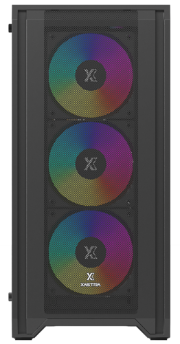 Корпус XASTRA A500 4ARGB Black представлен в типоразмере Mid Tower и обладает габаритами 218 x 465 x 461 мм. В нем можно разместить все необходимые комплектующие и обеспечить при этом нормальную циркуляцию потоков воздуха для охлаждения «горячих» компонентов сборки. Материнская плата располагается в корпусе вертикально, блок питания длиной до 200 мм размещается снизу. При сборке ПК в представленной модели можно задействовать видеокарту длиной до 415 мм и процессорный кулер высотой до 165 мм.